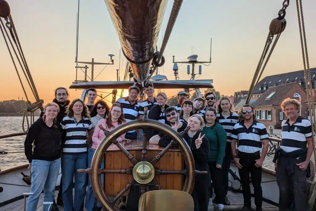 Der Segeltörn diente vor allem dem Onboarding der neuen Auszubildenden und der Förderung von Kommunikations- und Organisationsfähigkeiten. An Bord lernten die Teilnehmenden, wie ein Schiff – und im übertragenen Sinn auch ein Unternehmen – funktioniert. Die junge Crew des Schiffes leitete die Auszubildenden an und band sie in anspruchsvolle Aufgaben ein: So ging es hoch hinauf auf die Masten, um gemeinsam die Segel einzuholen. Die Auszubildenden waren motiviert bei der Sache und arbeiteten fleißig an Bord mit. Die erste Etappe führte am 18. September nach Dänemark zur Insel Lyø. Am folgenden Tag segelte die Gruppe weiter zur Insel Ærø, bevor sie am 20. September in Kiel eintrafen.