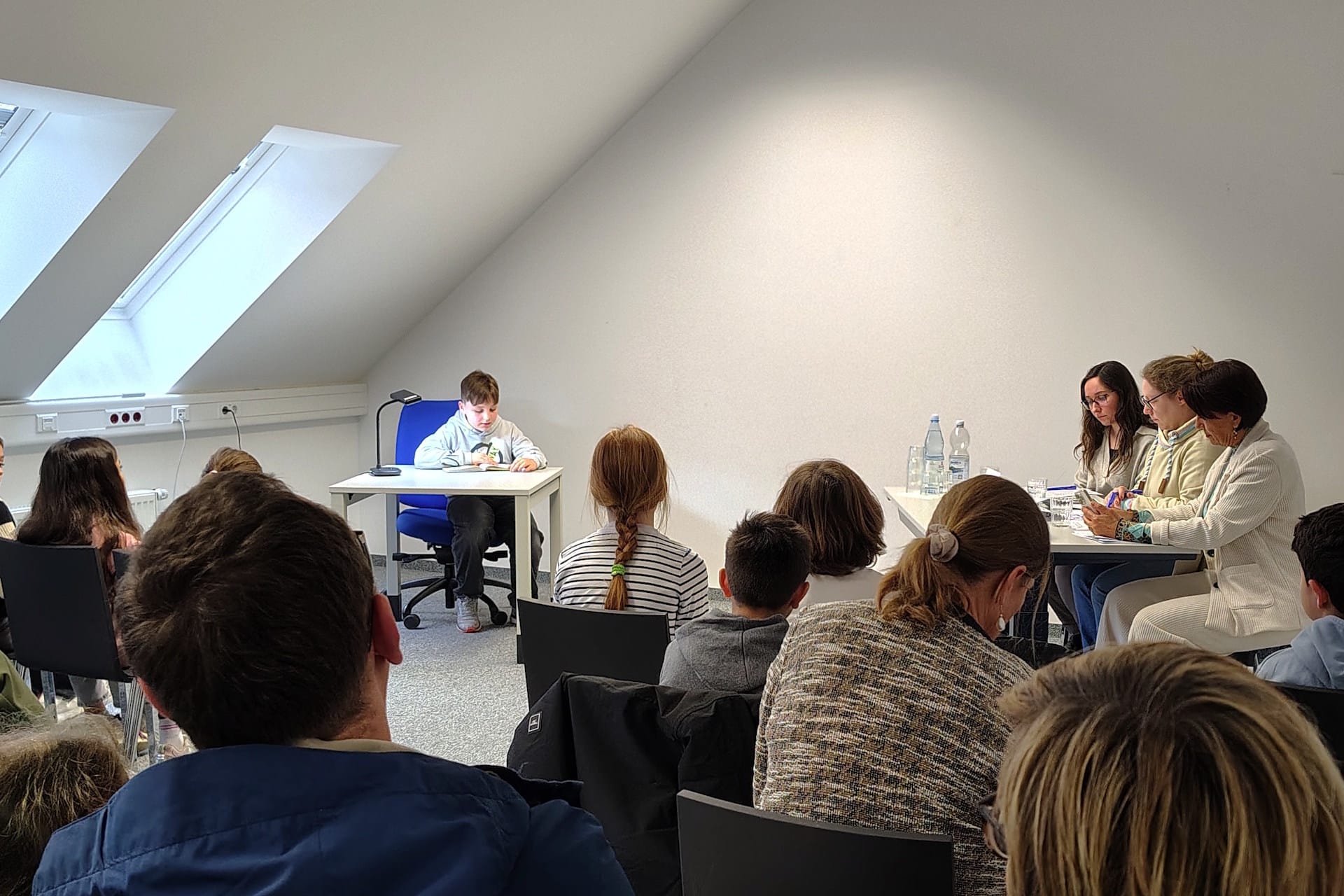 Jury und Publikum lauschen gespannt dem Vortrag eines Viertklässlers.