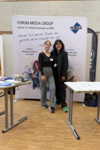 Auch mit der Konradin-Realschule Friedberg arbeitet FORUM immer wieder zusammen. Am 16. Oktober 2025 fand dort die Berufsorientierungsmesse „Berufswelten“ statt. Die Veranstaltung wird seit einigen Jahren von Schule in Zusammenarbeit mit dem Elternbeirat und den Wirtschaftsjunioren Augsburg organisiert. Ziel ist es, Schülerinnen und Schülern eine praxisnahe Orientierung bei der Berufswahl zu bieten. Viele Jugendliche der Klassenstufen 8-10 waren in Begleitung ihrer Familie gekommen.