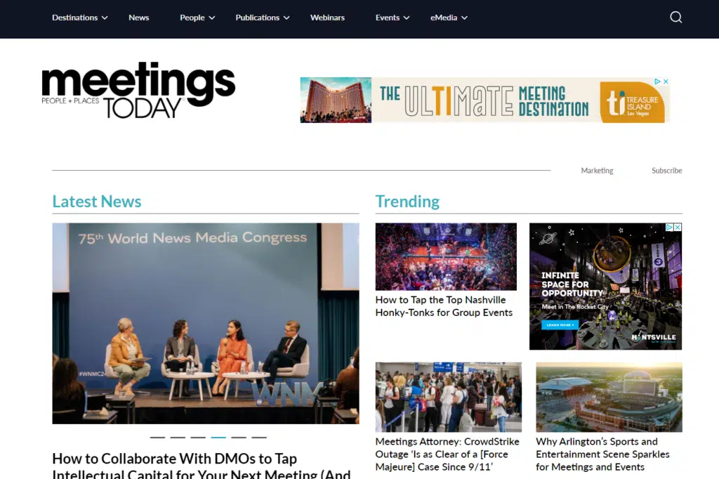 Die amerikanische Tochtergesellschaft der FORUM MEDIA GROUP, die Trade Press Media Group (TPMG), ein marktführendes, wachstumsorientiertes B2B-Medienunternehmen mit Hauptsitz in Wauwatosa, Wisconsin, hat Meetings Today übernommen. Meetings Today mit Sitz in Cedar Rapids, Iowa, bietet der nordamerikanischen Meeting- und Event-Branche eine wichtige Informationsplattform für erfolgreiche globale Veranstaltungen. Mit dem Abschluss der Akquisition am 31. Juli 2024 ist Meetings Today seit dem 1. August 2024 offiziell Teil des TPMG-Markenportfolios.