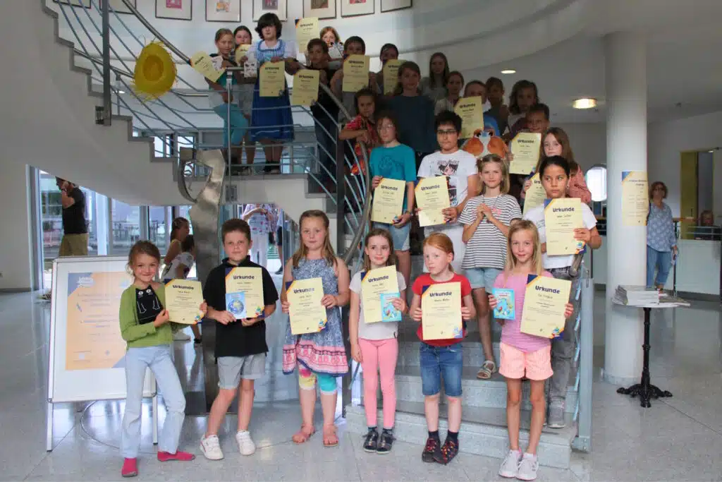 Geschäftsführerin Katrin Krauß-Herkert begrüßte die Anwesenden und erläuterte die Idee hinter dem Wettbewerb: „Es gibt viele Möglichkeiten für sportliche Kinder, sich mit anderen im Wettkampf zu messen. Wir wollten das Gleiche auch für das Lesen und Schreiben bieten, denn beides werden aus unserer Sicht auch in Zukunft wichtige Fähigkeiten für die berufliche Karriere bleiben.“