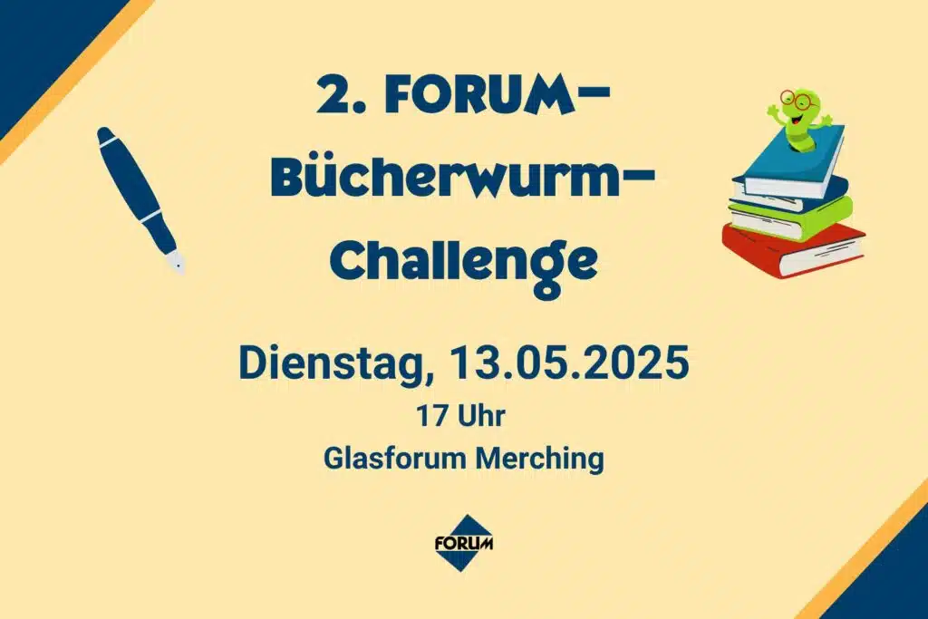 Kreative Ideen, gute sprachliche Fähigkeiten und Freude am Vorlesen sind gefragt bei der 2. FORUM-Bücherwurm-Challenge, die am 13. Mai 2025 in Merching stattfindet. Die FORUM MEDIA GROUP lädt Grundschulkinder der 2. bis 4. Klassen zur Teilnahme an der zweiten Auflage ihres Lese- und Schreibwettbewerbs ein. Ziel der Veranstaltung ist es, die Begeisterung für das Lesen und Schreiben zu fördern und tolle Leistungen in diesem Bereich hervorzuheben.